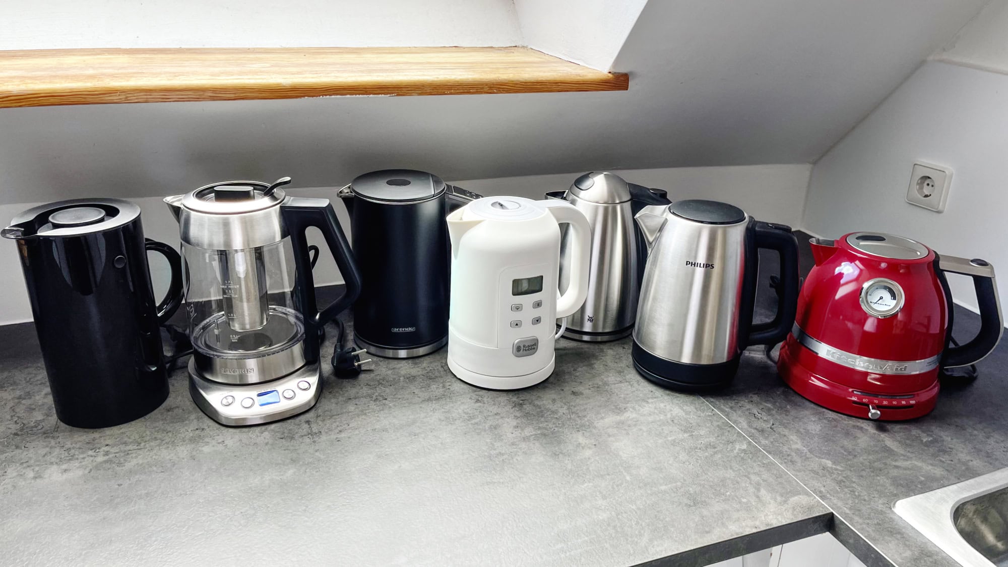 - Zum aktuellen Zeitpunkt haben wir insgesamt 7 Wasserkocher in unserem Testzentrum geprüft.